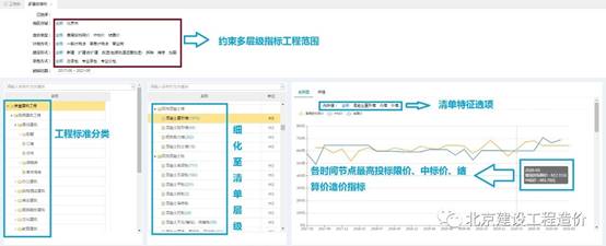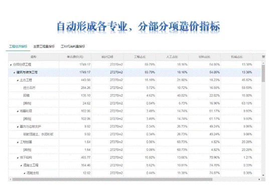 平台分析形成多层级、结构化的指数指标,覆盖各专业、服务全过程,引导市场主体合理确定和有效控制工程造价;可按照工程造价形成节点进行指数指标的分类计算,目前包括招标控制价、中标价、结算价;可对包括单项工程、分部分项、工程量清单子目的各层级进行综合统计分析,发布相应指数指标。
