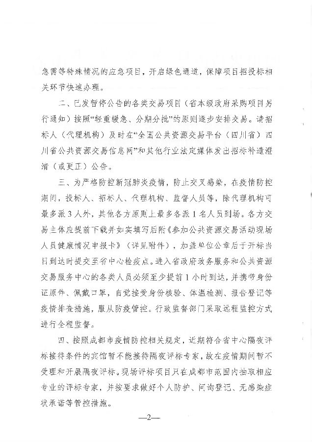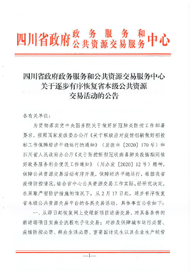 关于逐步有序恢复省本级公共资源交易活动的公告