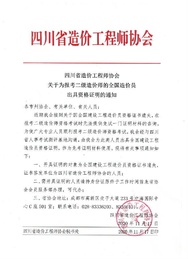 关于报考二级造价师的全国造价员出具资格证明的通知
