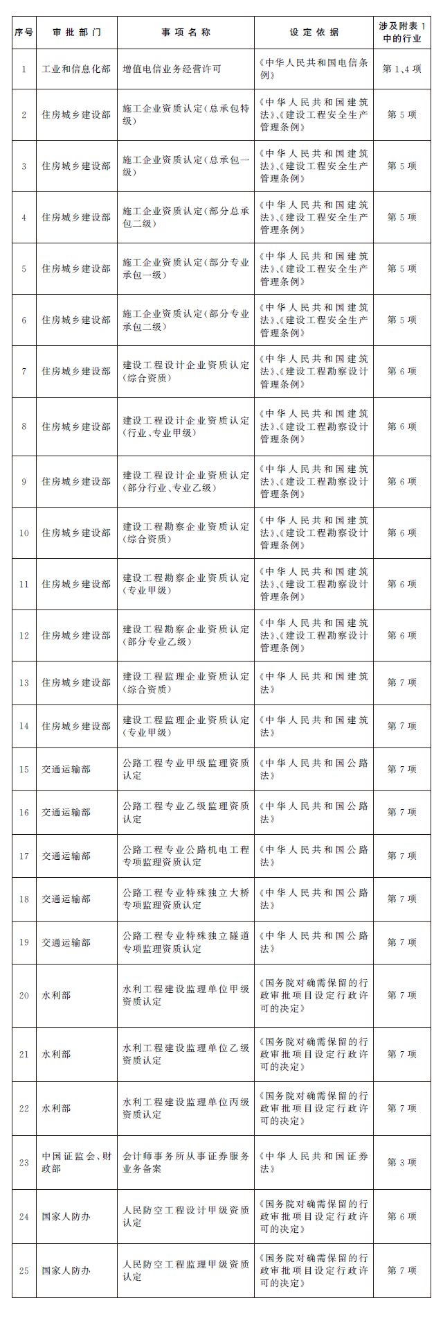 附表:1.首批纳入“一业一证”改革试点的行业目录