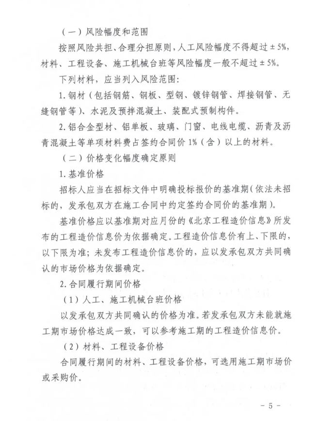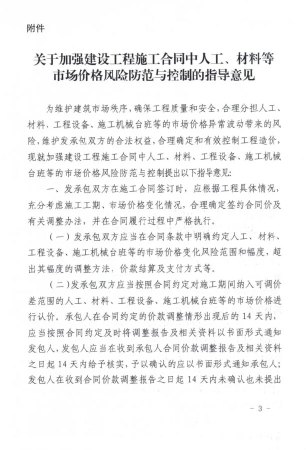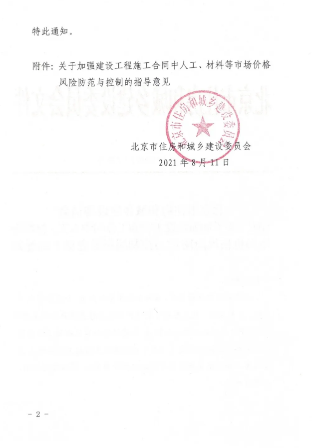 北京市住房和城乡建设委员会印发《关于加强建设工程施工合同中人工、材料等市场价格风险防范与控制的指导意见》的通知