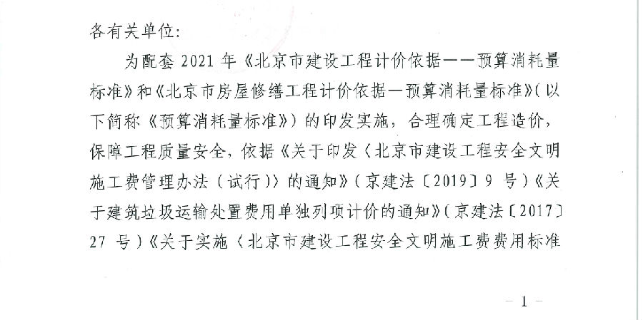 北京市住房和城乡建设委员会关于印发配套2021年《预算消耗量标准》计价的安全文明施工费用标准的通知
