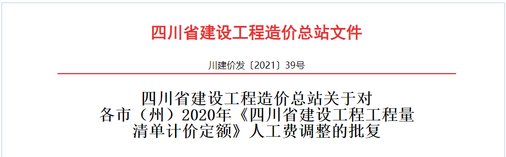 按照《四川省住房和城乡建设厅关于发布<四川省建设工程工程量清单计价定额>的通知》(川建造价发〔2020〕315号)和《四川省住房和城乡建设厅关于改进和完善建设工程定额计日工单价和人工费调整工作的通知》(川建造价发〔2020〕316号)的精神,根据《四川省建设工程造价总站关于印发2020年〈四川省建设工程工程量清单计价定额〉人工费调整系数公式和人工费调整幅度及计日工人工单价表格的通知》(川建价发〔2021〕1号)的要求,现批准2022年上半年各市(州)2020年《四川省建设工程工程量清单计价定额》人工费调整幅度及计日工人工单价(见附件)。