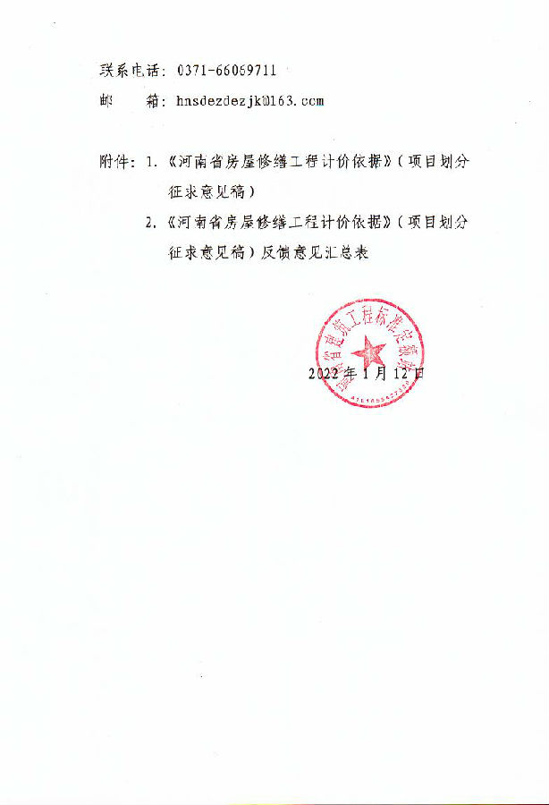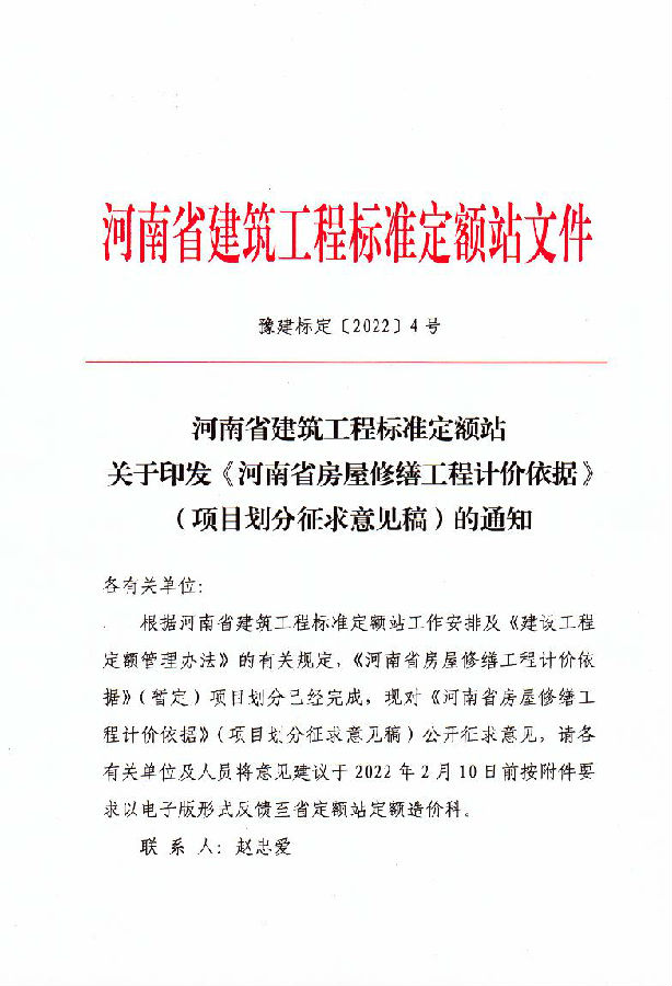 河南省建筑工程标准定额站关于印发《河南省房屋修缮工程计价依据》(项目划分征求意见稿)的通知