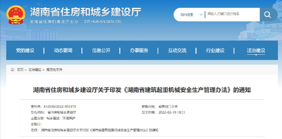 湖南省住房和城乡建设厅关于印发《湖南省建筑起重机械安全生产管理办法》的通知