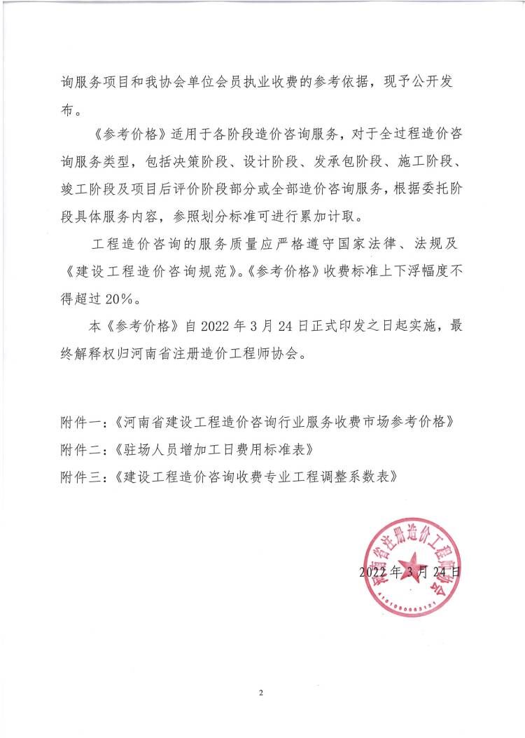 关于印发《河南省建设工程造价咨询行业服务收费市场参考价格》的通知