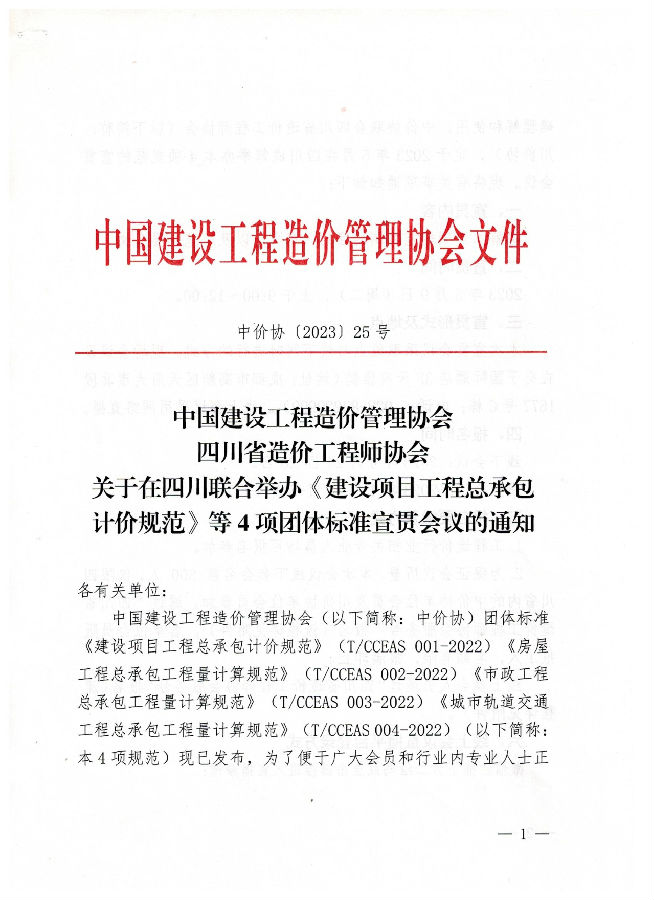 关于在四川联合举办《建设项目工程总承包计价规范》等4项团体标准宣贯会议的通知