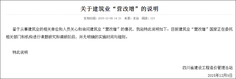 转:四川省建设工程造价管理总站关于建筑业“营改增”的说明