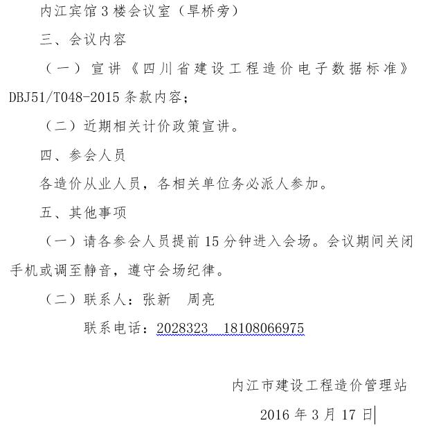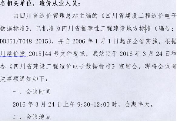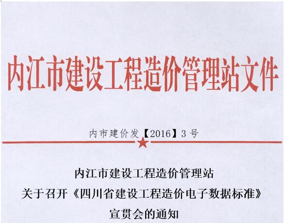 转:内江市建设工程造价管理站 关于召开《四川省建设工程造价电子数据标准》 宣贯会的通知