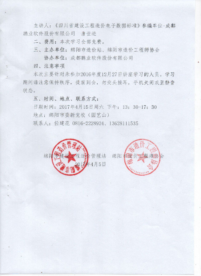 三、主办单位:绵阳市造价站、绵阳市造价工程师协会