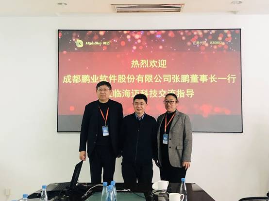 2021年3月4日,鹏业软件董事长张鹏一行到访海迈科技参观交流,海迈科技总裁杨槐及副总裁邵华出席了此次会议,双方围绕行业发展方向,建设全过程管理信息化等方面,展开深入探讨。
