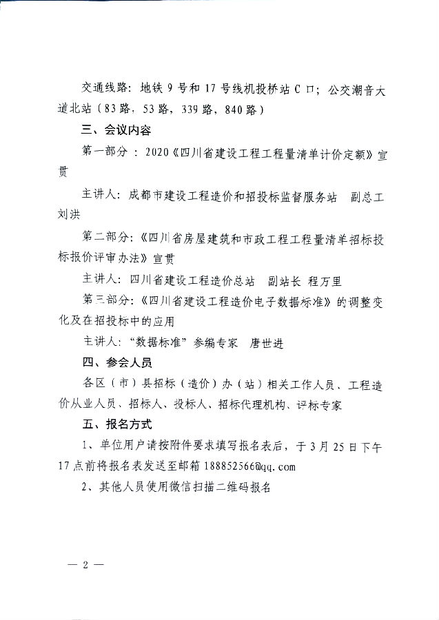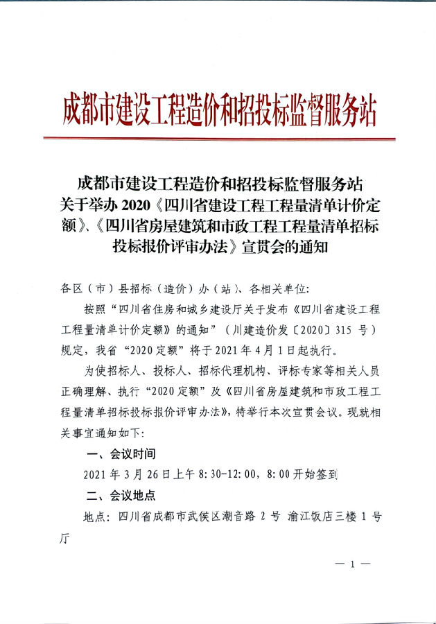 为使招标人、投标人、招标代理机构、评标专家等相关人员正确理解、执行“2020定额”及《四川省房屋建筑和市政工程工程量清单招标投标报价评审办法》,特举行本次宣贯会议。现就相关事宜通知如下:
