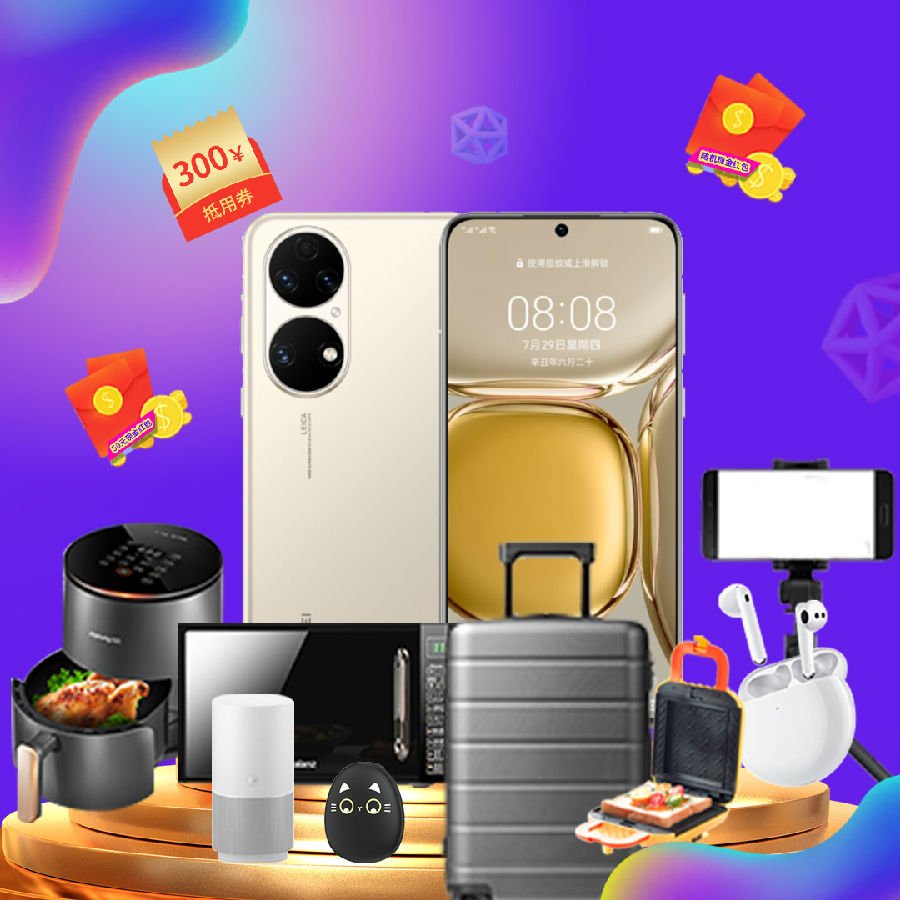华为P50、华为无线耳机、烤箱一体机、小米旅行箱