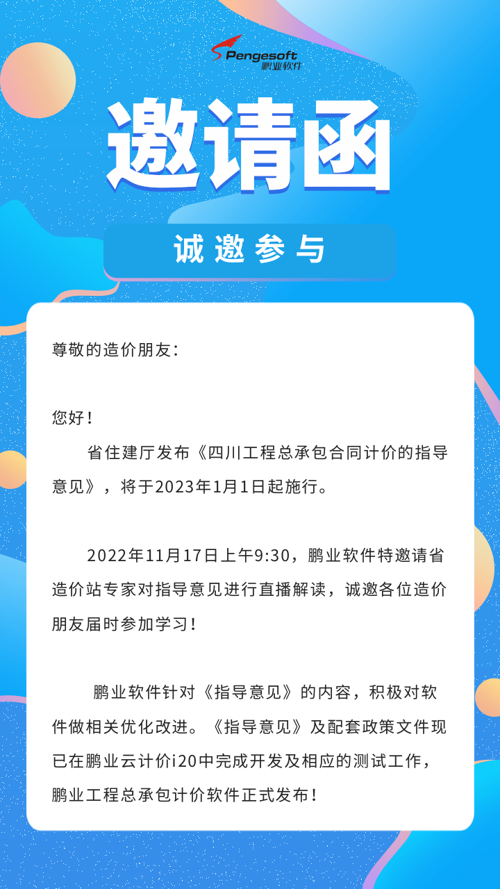 【邀请函】省站专家直播解读《四川工程总承包合同计价的指导意见》,配套鹏业软件发布!