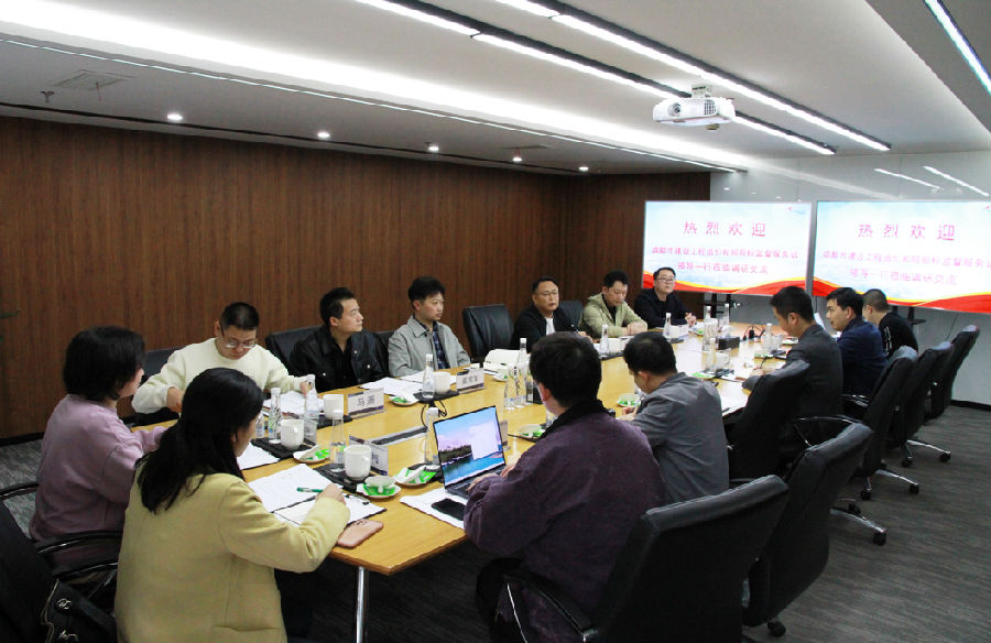 3月27日下午,成都市建设工程造价和招投标监督服务站(以下简称“市造价站”)站长王亮、副站长周虹和相关业务科室人员一行莅临鹏业调研交流。