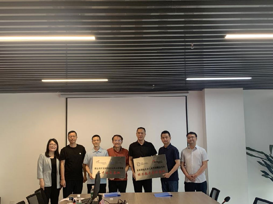西财天府学院副校长袁勋、鹏业软件副总经理陈锐代表双方签署了合作协议并授牌。西财天府学院信息服务部主任吴希敏、工程与材料学院院长周大利、常务副院长范香、副院长李俊鹏等校方领导及专业负责人,鹏业软件算量产品部总监郎云飞、助理总监黄剑等见证签约。