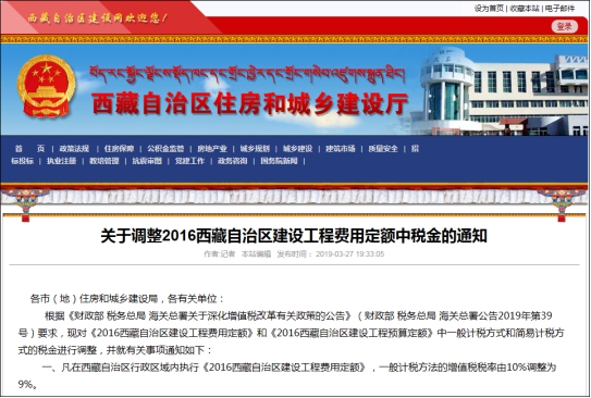 三、藏建招〔2019〕36号关于调整2016西藏建设工程费用定额中税金的通知