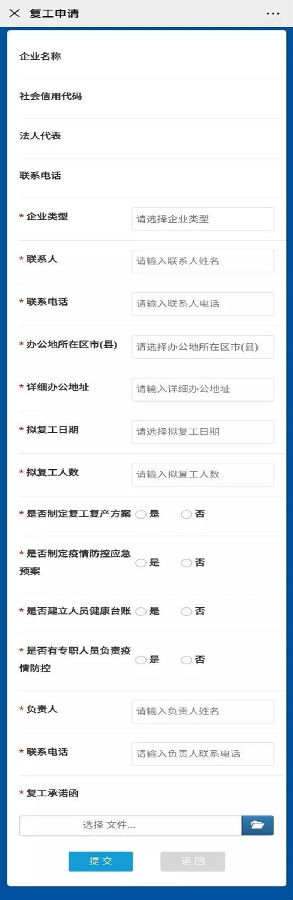 企业、项目网上复工申请及核查系统,支持多级审查和电子签章。