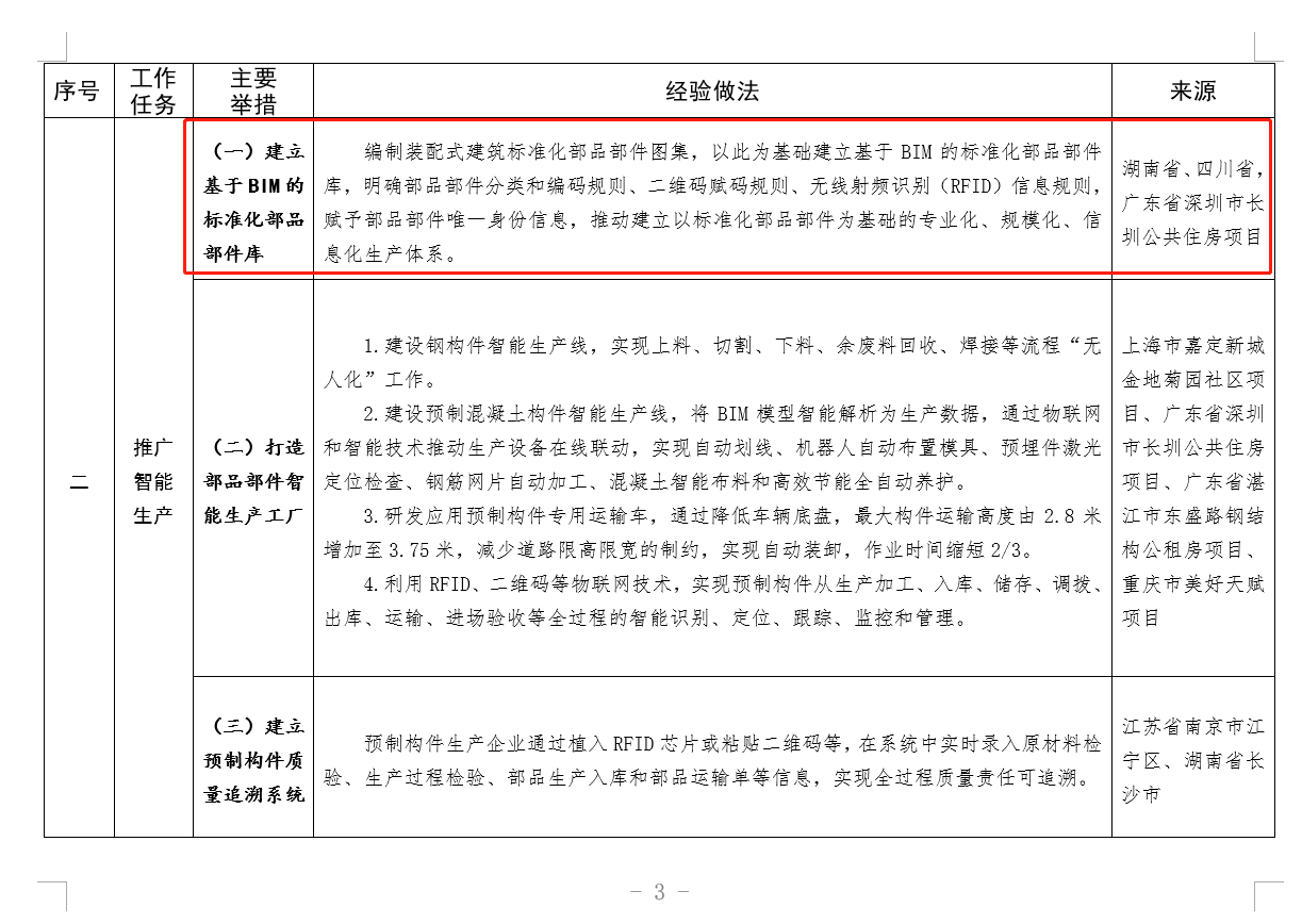住建部发布《智能建造与新型建筑工业化协同发展可复制经验做法清单(第一批)》,其中对各地围绕数字设计、智能生产、智能施工等方面积极探索并取得较大进展的经验与做法进行了总结与整理。
