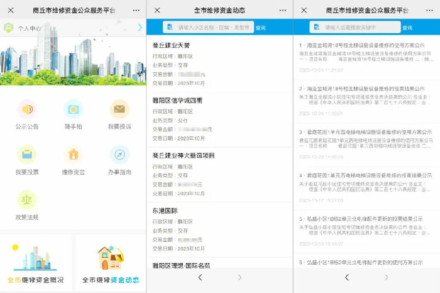 主管部门还为每次投票专门设置“询异期限”,业主可在期限内线上查询小区内详细的投票情况,发现一户多投或少投等异常情况均可一键反馈,确保投票结果的民主性、真实性和准确性。除投票外,资金管理平台还支持业主线上交存维修资金、线上申请、线上查询等各种便民服务。