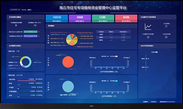 在智能监管方面,商丘市主管部门坚持以“数据驱动管理”。主管部门通过监管大屏可实时了解辖区内维修资金的交存、使用拨付、资金管理等动态情况,资金数据集中展示,异常变动随时把控。