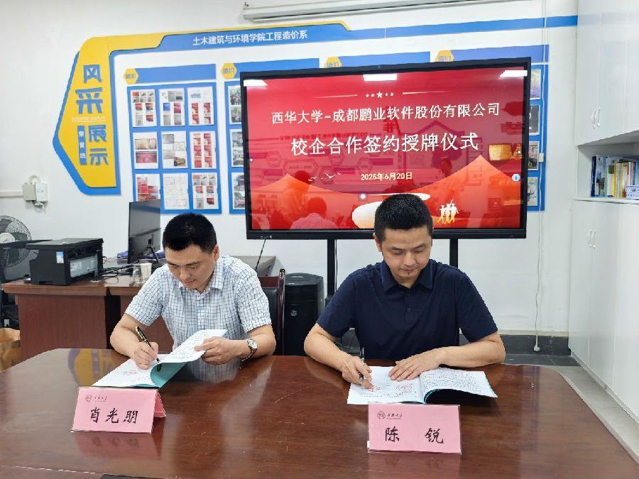 2025年6月20日,西华大学(以下简称"西华")与成都鹏业软件股份有限公司(以下简称"鹏业软件")在郫都校区隆重举行校企战略合作签约仪式。根据协议约定,双方将重点围绕以下领域开展深度合作:创新人才培养模式、共建专业课程体系、推进产学研协同创新、完善实习就业联动机制等,共同构建校企协同育人新格局。