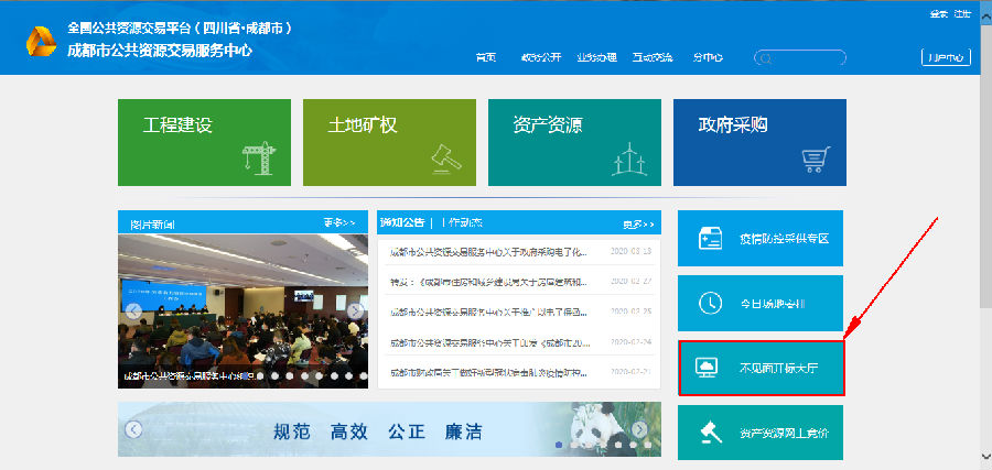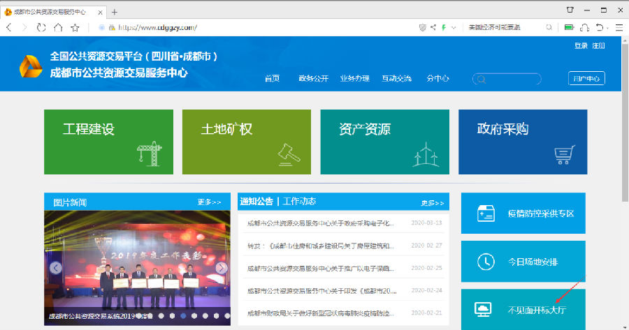 登录成都市公共资源交易服务中心网站(www.cdggzy.com),点击