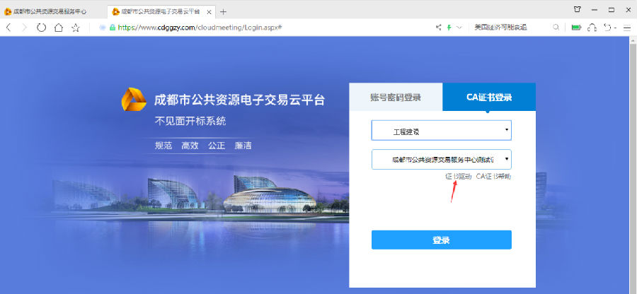 (2)点击“CA数字证书登录”,点击“证书驱动”,下载驱动。