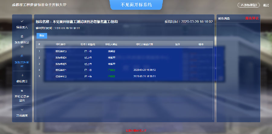 选择“工程建设业务”类型,使用ca证书进入系统,选择开标标段进入标段开标。