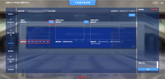 所有投标人解密完成后或解密截止时间到达后,点击【下一步】进入参数抽取环节。