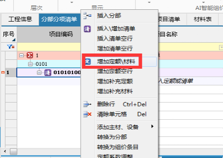 方式1(临时补充定额):在分部分项清单表中的清单上点击鼠标右键增加补充定额,补充定额需要自行输入定额编码(定额编码需以“ * ”或 ”补“字开头),名称,工程量,单位,价格