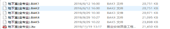 ①第一种:工程文件目录下后缀为BAK的备份文件,通过修改文件的类型(后缀名称修改成iaz即可恢复打开)。备注:通过文件名称和文件的修改时间来确定需要恢复的文件