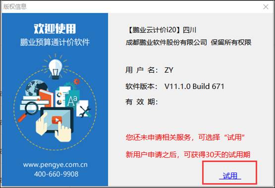 二、 鹏业造价云授权激活
