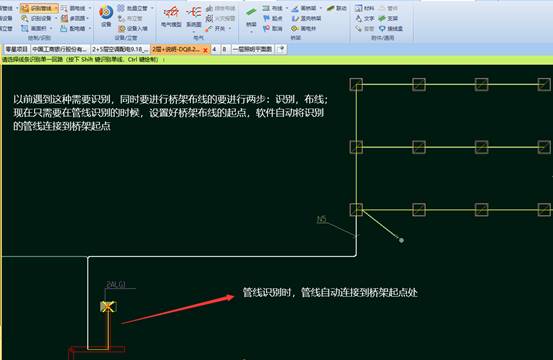 场景:有的回路,既需要识别,也要进行桥架布线,以前需要分两步来做,现在只需要设置好回路的起点,软件在识别管线时,自动进行桥架布线,连接到起点处。