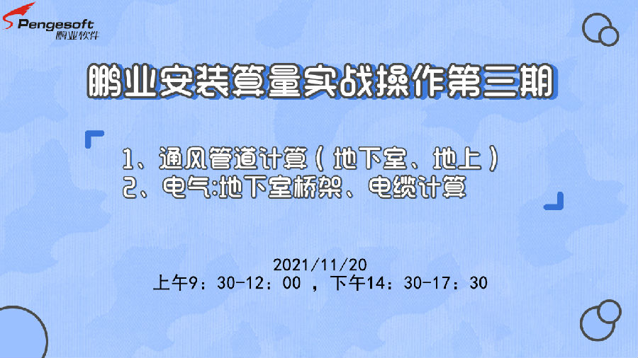 广大用户朋友期待的鹏业安装算量实战培训本周六即将开始,共计六期,实例工程实战演练,前所未有的详细!