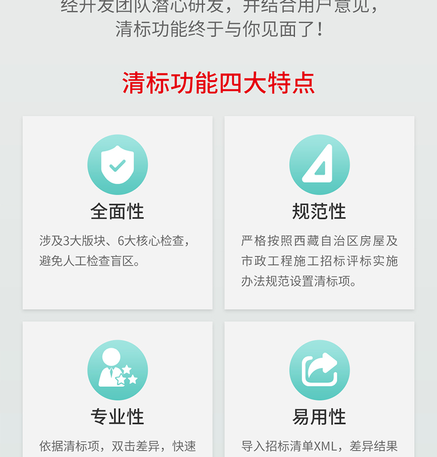 为更好的助力企业高效投标,协助投标人编制投标报价文件时进行高效、准确的分析,排查编制过程中存在的异常问题,经开发团队潜心研发,并结合用户意见,清标功能可以免费使用了!