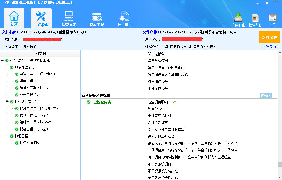 导出后,用CJZ检查工具检查投标CJZ并和招标CJZ文件对比检查。