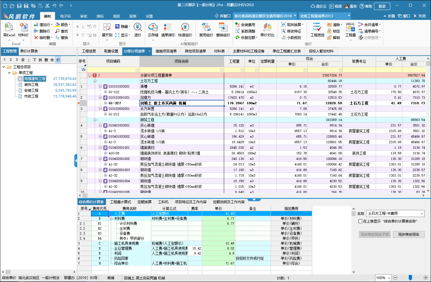 风鹏云计价V20.0,是基于自主“3i智慧造价”理念开发的一款精品软件,以湖北省建设领域工程造价业务为核心,结合人工智能,云计算,大数据等技术,是一款全新产品;广泛适用于湖北省建设行业建筑工程编制工程概、预、结算、审计,以及招投标报价;全过程造价数据流转无缝衔接,让造价工作更加高效、快捷、智能。