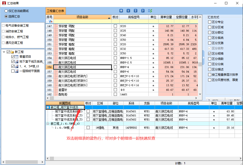 4、汇总表中的汇总明细如何多个明细快速反查?