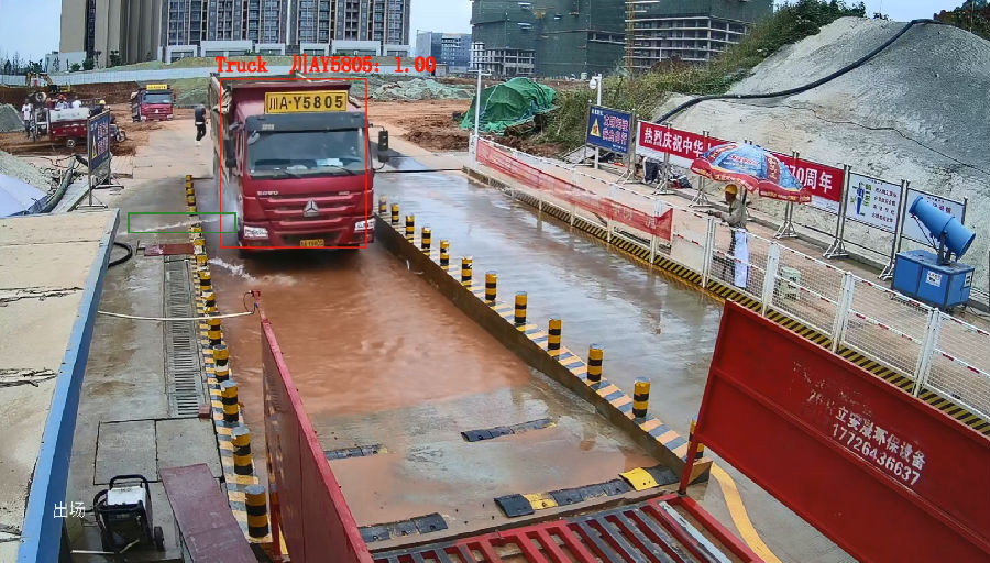 用于车辆出入口,可识别进出工地车辆类型,支持运渣车车牌识别以及是否冲洗的检测。