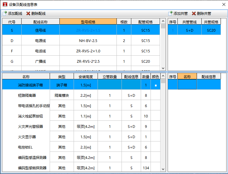 智能计算火灾报警系统,设置各点位设备配线信息,软件智能计算配管配线工程量,多线共管也能轻松解决。
