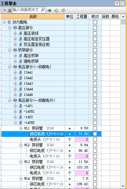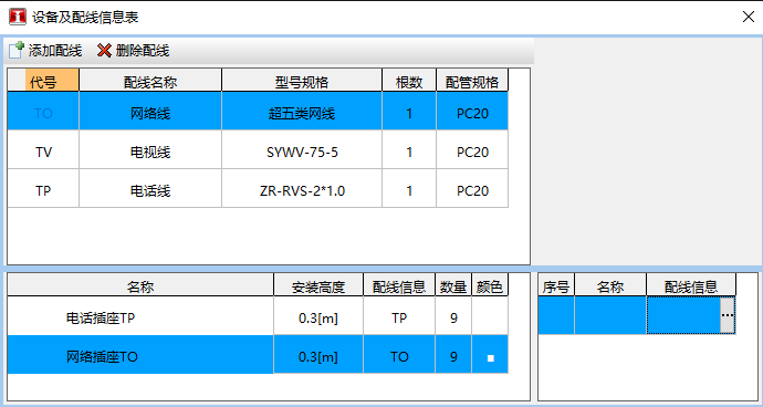 智能计算综合布线系统,设置各类设备配线信息,软件自动从末端开始统计累加配线数量,智能计算各配管配线工程量。