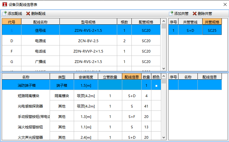 火灾报警,设置好各设备接线信息后,各种配管配线工程量量智能拆分,多线共管也能轻松解决。