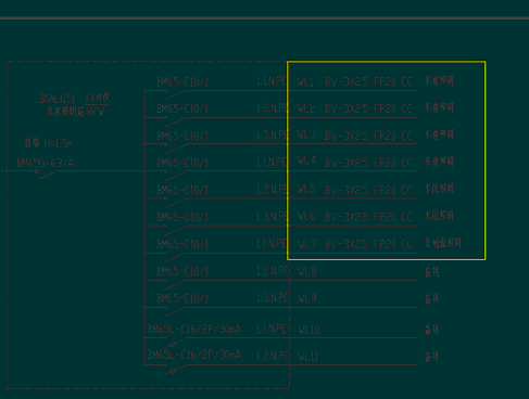 经过识别的配电箱(柜)系统表,在图纸中标记识别范围(下图黄色矩形框),同时配电箱系统表可以反查到该范围