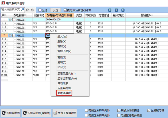 预留值修改后,右键菜单中执行同步计算项功能,系统表中回路预留值同步到计算项回路预留值