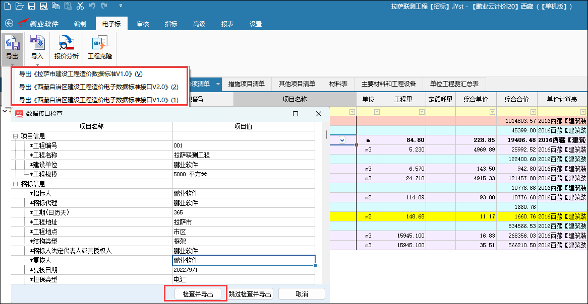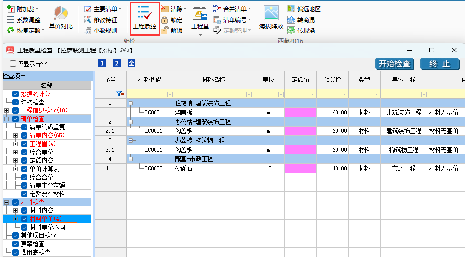 通过“工程质控”和“检查并导出”进行招投标质量管控;