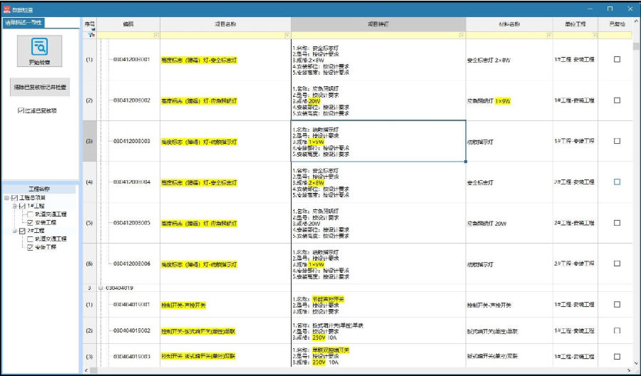 2. 清单一致性检查:项目名称、项目特征、组价材料描述内容检查,保持实质性内容一致性,提升编制质量。如图示: