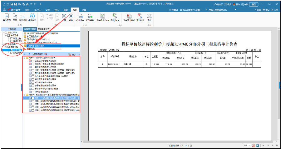 1. 利用审核模式,将中标数据与招标控制价对照进行差异分析,形成清标对照报表。如图示: