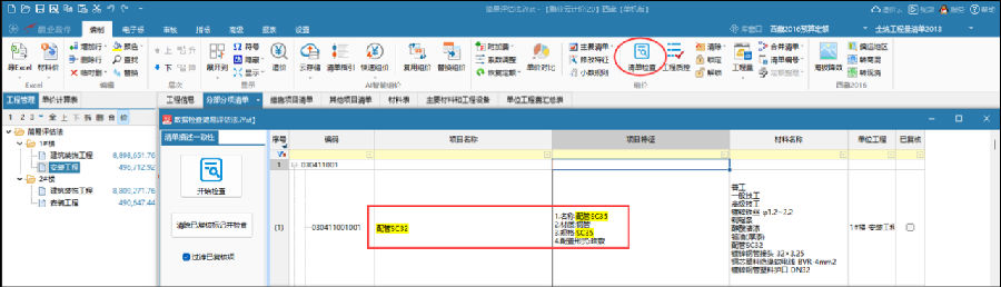 快速检查清单名称与项目特征关键信息是否一致。