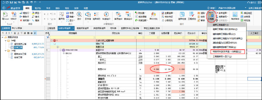 实现材料工程量一键转换成消耗量。